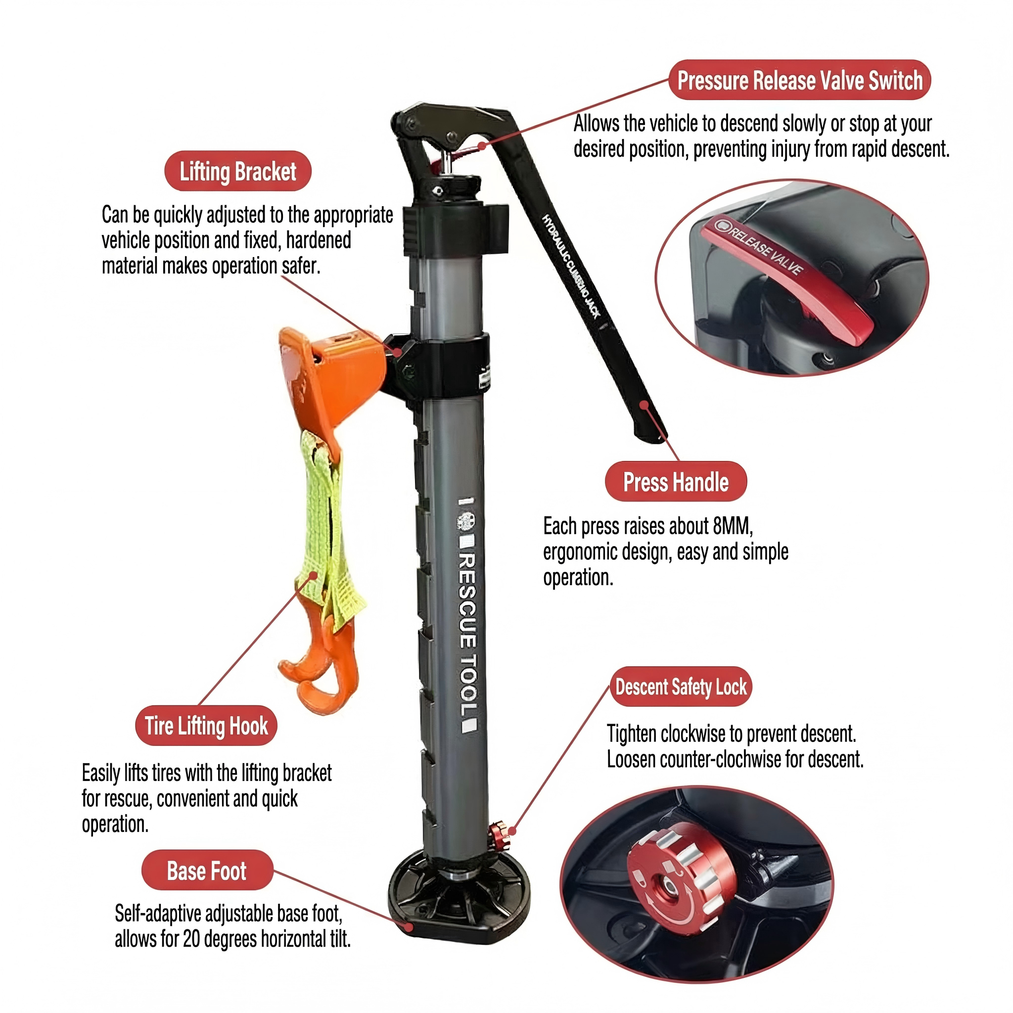 Whether it’s an emergency rescue for a vehicle stuck in sand or a flat tire on the road, or a precise lifting operation for equipment installation in a workshop, this hydraulic jack can handle it all with its powerful performance. Its labor-saving efficiency far surpasses that of traditional mechanical jacks, allowing even women to easily lift vehicles.